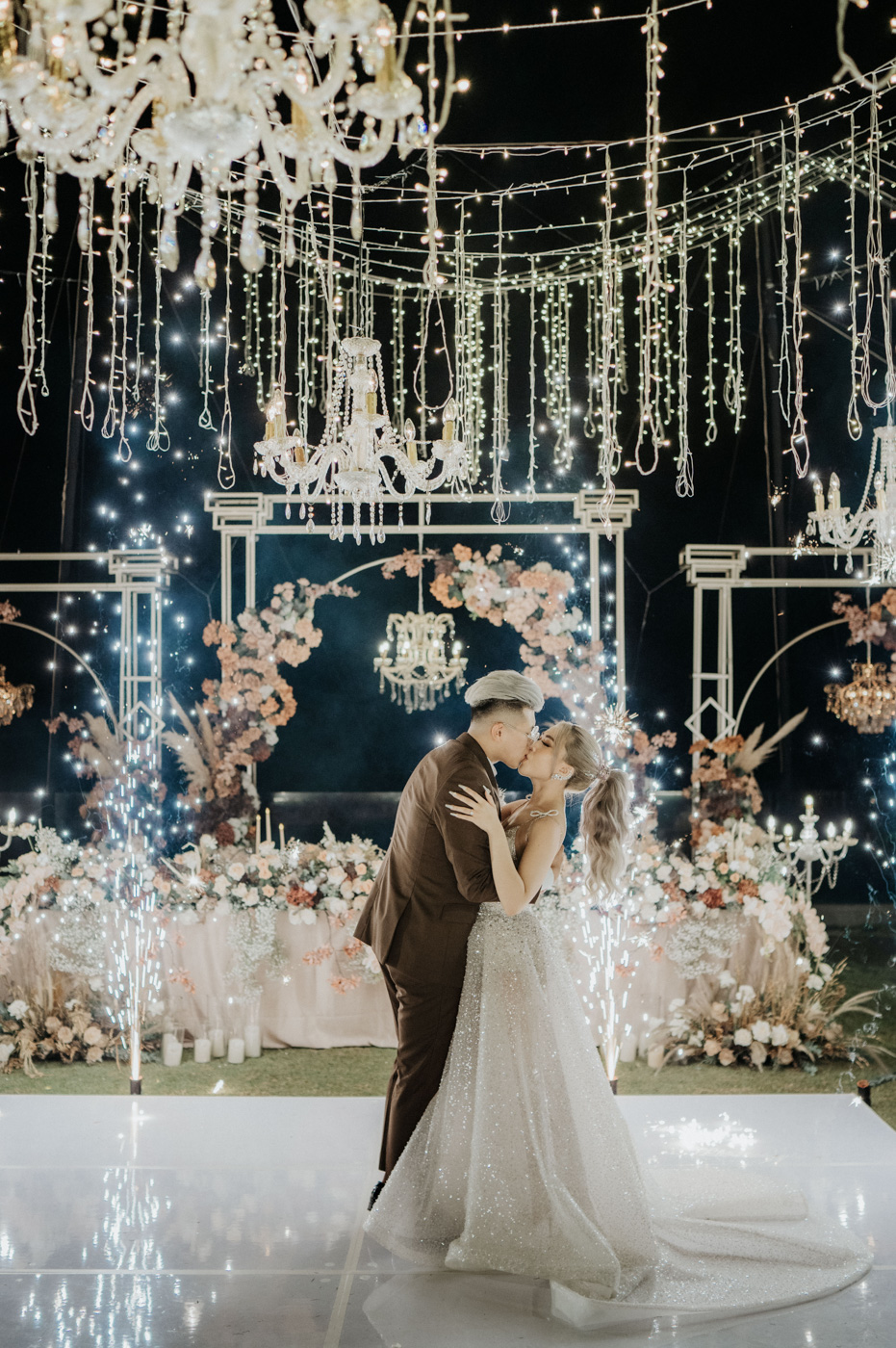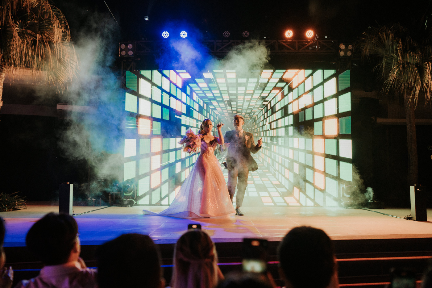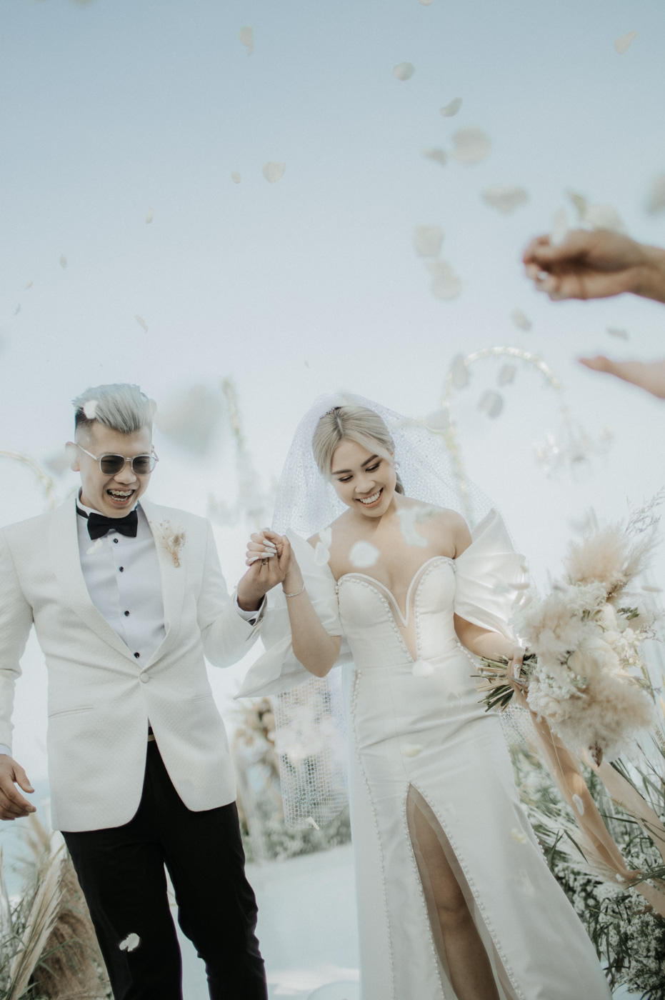 In a joyful celebration where old meets new, the groom and bride's unique style brings a burst of personality to their paradise wedding.