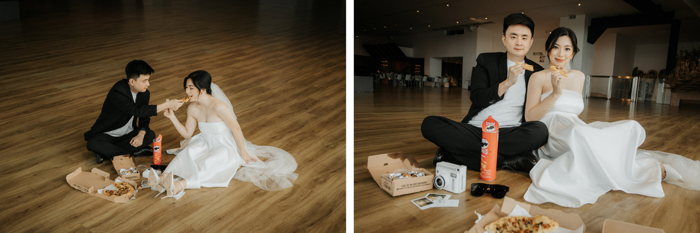 Egi and Irene decided to capture the happiness of their dating days before tying the knot. They chose to have their photos taken in an art gallery in Jakarta, bringing along their favorite mini toys for a playful touch. Initially feeling a bit shy in front of the camera, they relaxed when chatting about their toys, and their faces lit up with joy. From posing with the artworks to sharing laughs over pizza and chips, every moment was filled with love and laughter. Their photo session reminds us that love is all about having fun together, and Egi and Irene are ready to keep that spirit alive as they begin their married life.
