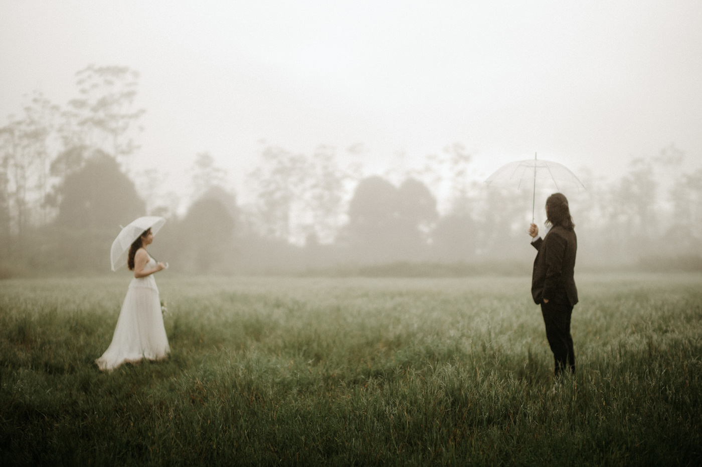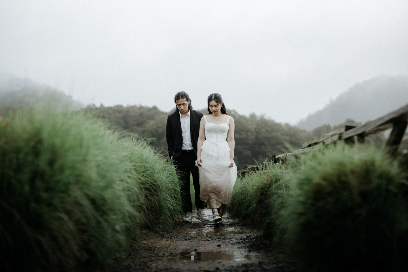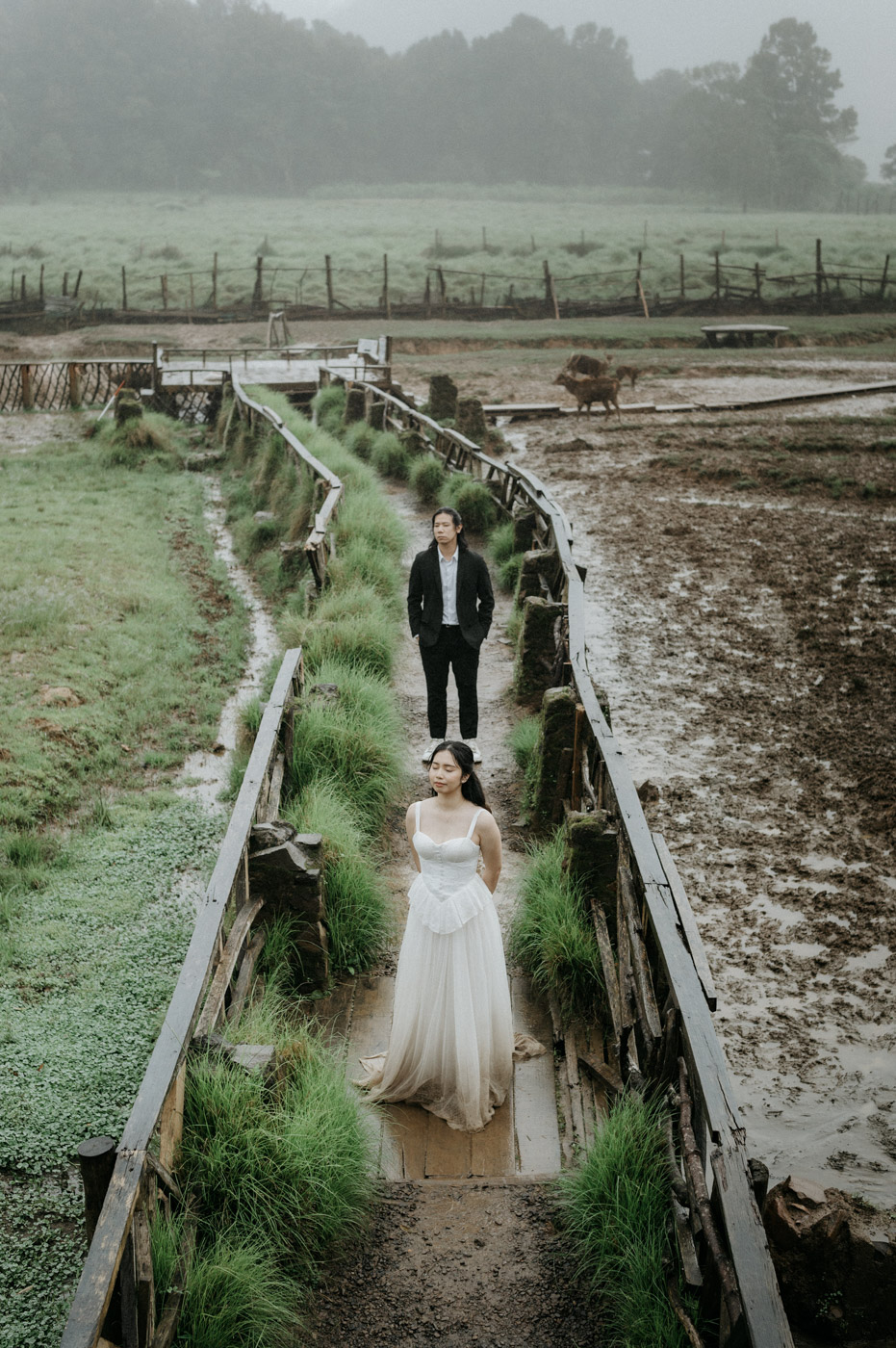 Under the gentle drizzle and the fog's tender veil, we immortalize the story of two intertwined souls.