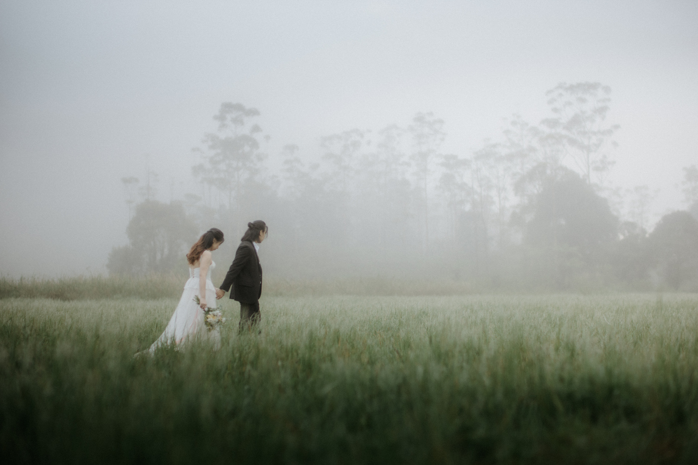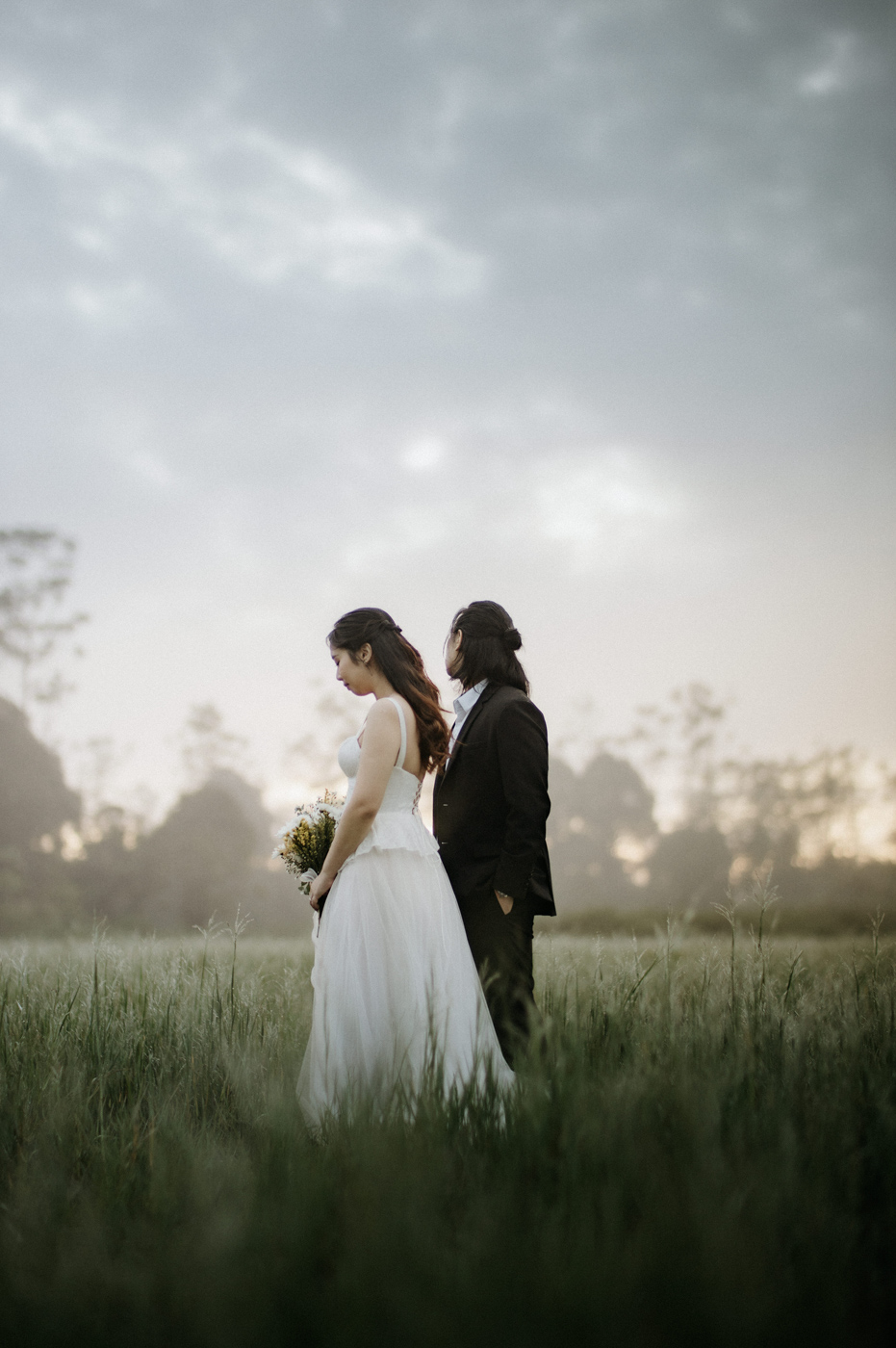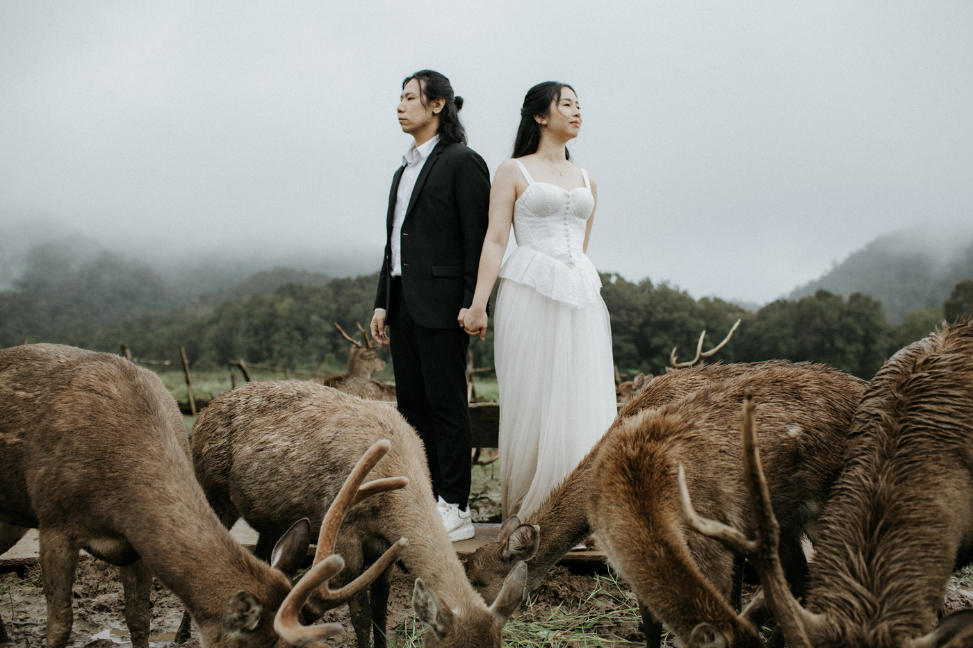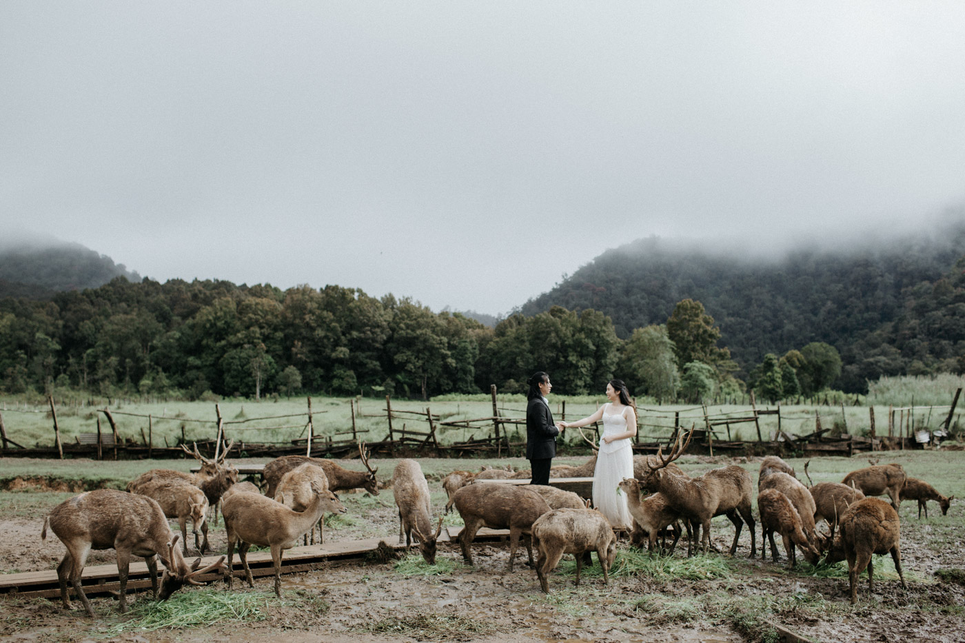 Under the gentle drizzle and the fog's tender veil, we immortalize the story of two intertwined souls.